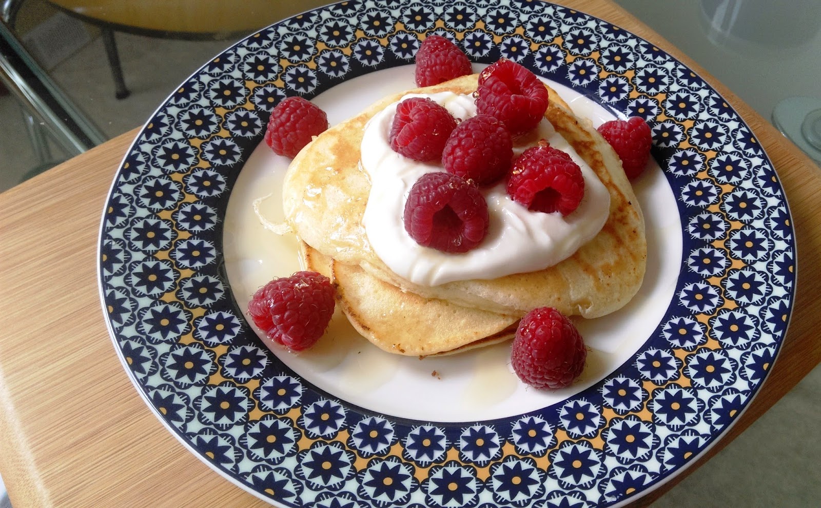 This one is a little more simple and doesn't involve any cooking. Simply put some crème fraiche on top of your pancakes, followed by some fresh raspberries. Again, I squeezed some agave nectar all over the top.