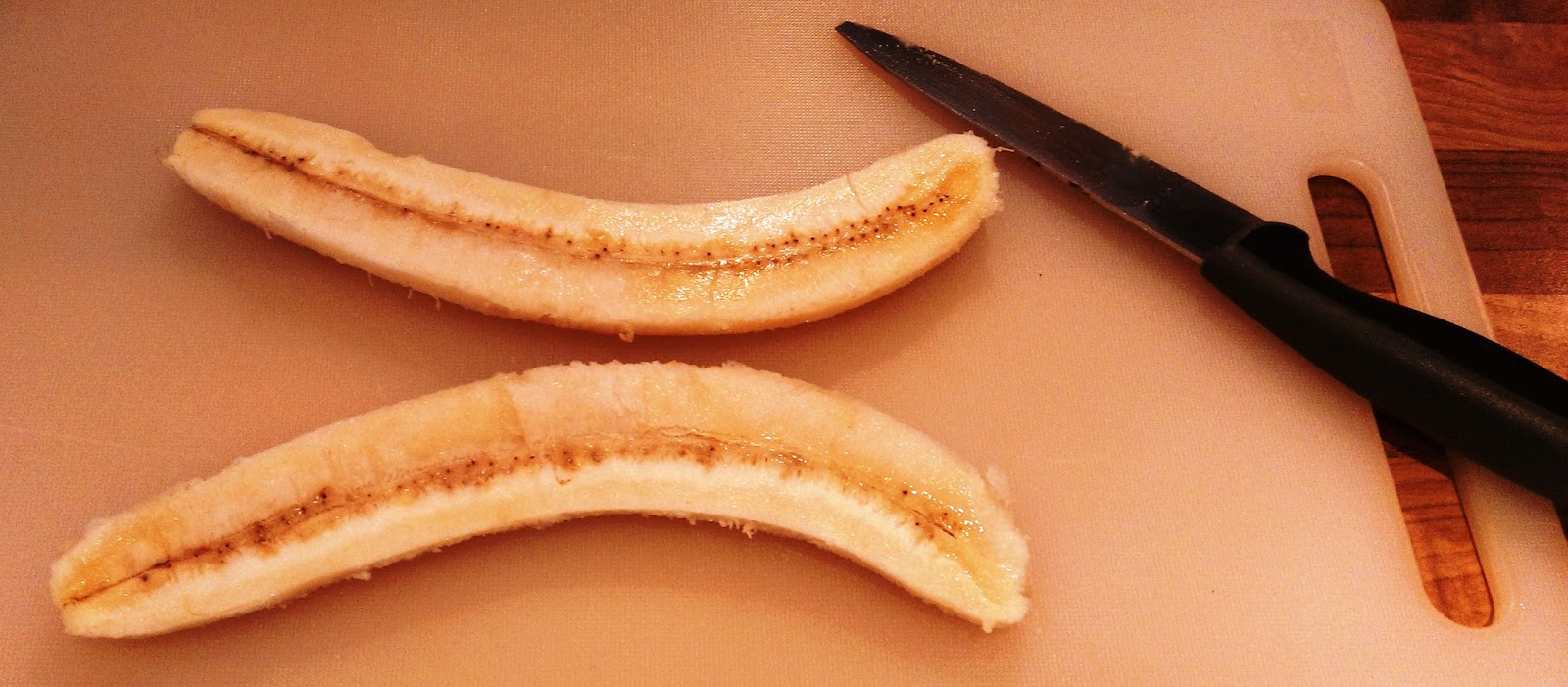 Cut your banana in half lengthways. All there is to do for this one is to fry the banana.